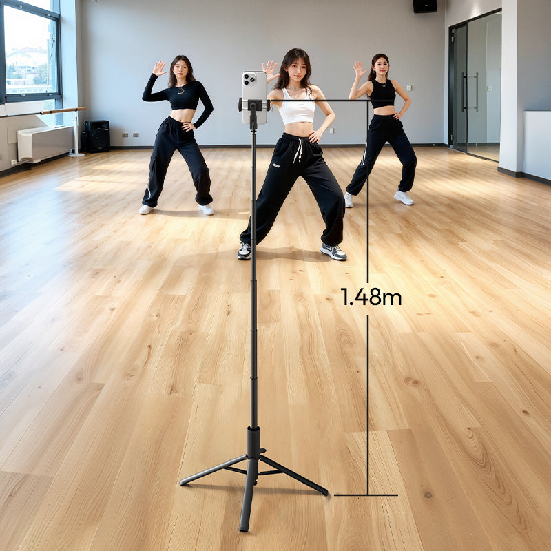 Extending to 1.46m, it’s perfect for wide-angle selfies and group shots—no one gets left out. The Bluetooth remote lets you control shots effortlessly, with a 10m max range for distant photo and video capture.